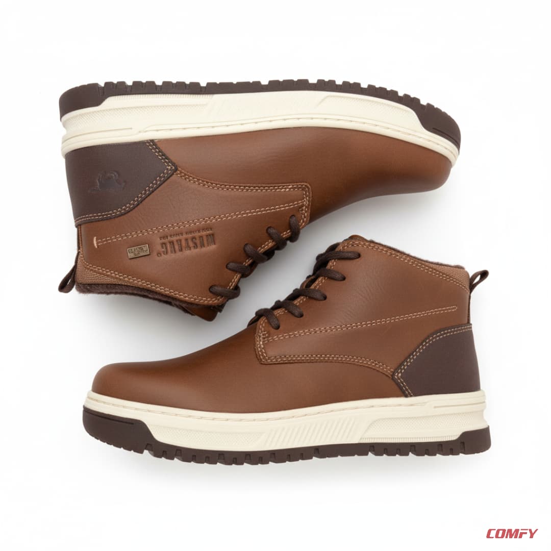 The boot is lined with soft suede at the collar for added comfort and features a durable off-white sole that offers excellent traction. With the iconic “MUSTANG” branding on the side and the “COMFY” assurance, this boot seamlessly blends rugged durability with everyday comfort. Perfect for both casual outings and more refined occasions, the Mustang Heritage Boot is designed to elevate your footwear collection while keeping your feet comfortable all day long.