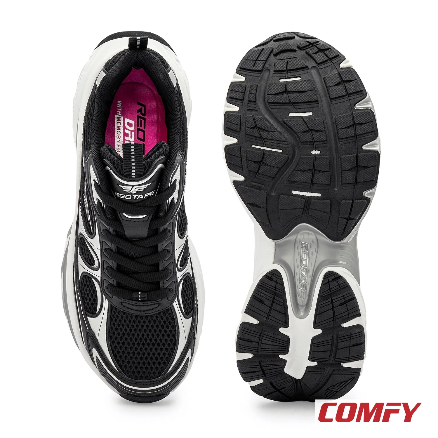 Red Tape Lifestyle Chunky Casual Shoes for Women offer a trendy chunky sole design with EVA + TPU + TPR outsole for shock absorption, grip, and durability on various surfaces. The breathable mesh + PU upper ensures ventilation, while the high-density foam or memory foam insole provides soft cushioning and support for all-day wear.